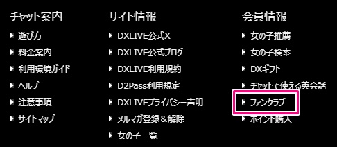 DXLIVEで一番下まで画面をスクロールするとファンクラブの入り口が見つかります。