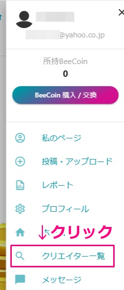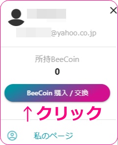 fanblebeeの右上メニューを開くとBeeCoinの購入ボタンがありますのでクリックしてみましょう。